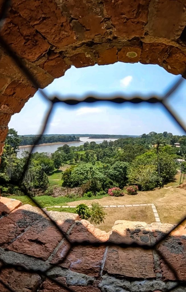 Respektvoll ging ich meiner Wege und besichtigte das restliche Grundstück: den Friedhof der verstorbenen, hier ehemals tätigen Bischöfe und eine große Kirche. Letztere weckte besonders mein Interesse, erlaubte man mir doch den Kirchturm bis zur Glocke hinaufzuklettern. Ich überlegte kurz, ob ich einmal kräftig an dem Glockenseil ziehen sollte, um sie zum Läuten zu bringen, doch dann wurde mir klar, dass dies wohl unpassend wäre. Über wackelige Holzleitern stieg ich von Etage zu Etage bis unter das Dach. Das kleine Turmfenster bot mir ein fantastisches Panorama auf den sich schlängelnden Fluss und den umliegenden Dschungel. Trotz weiter Distanz erkannte ich deutlich das schwarze Wasser des Rio Tefé, wie es auf das braune Gewässer des Amazonas stieß – ein eindrucksvolles Naturschauspiel.