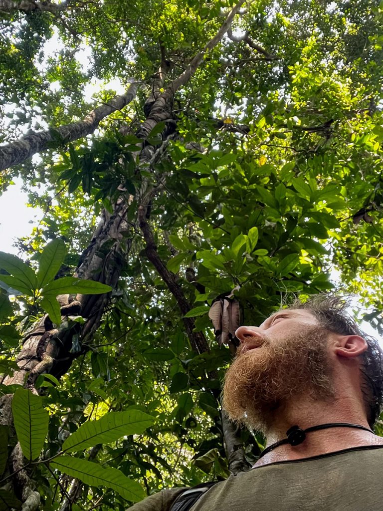 Und dann, urplötzlich, erspähte ich es: das leuchtende Scharlachgesicht. Hoch oben kletterte der Uakari auf dem Geäst eines Tropenriesen, wie ich die gigantischen Bäume hier nannte. Mit neugierigem Blick sah er direkt zu mir hinab. Gute zwanzig Minuten durfte ich ihn bestaunen und seinem Weg folgen, bevor er in den unendlichen Tiefen des Urwaldes verschwand. Tragischerweise gehört er zu den bedrohten Tierarten. Ihn wohlbehalten in seiner natürlichen Umwelt beobachten zu dürfen, war ein unvergessliches Erlebnis.