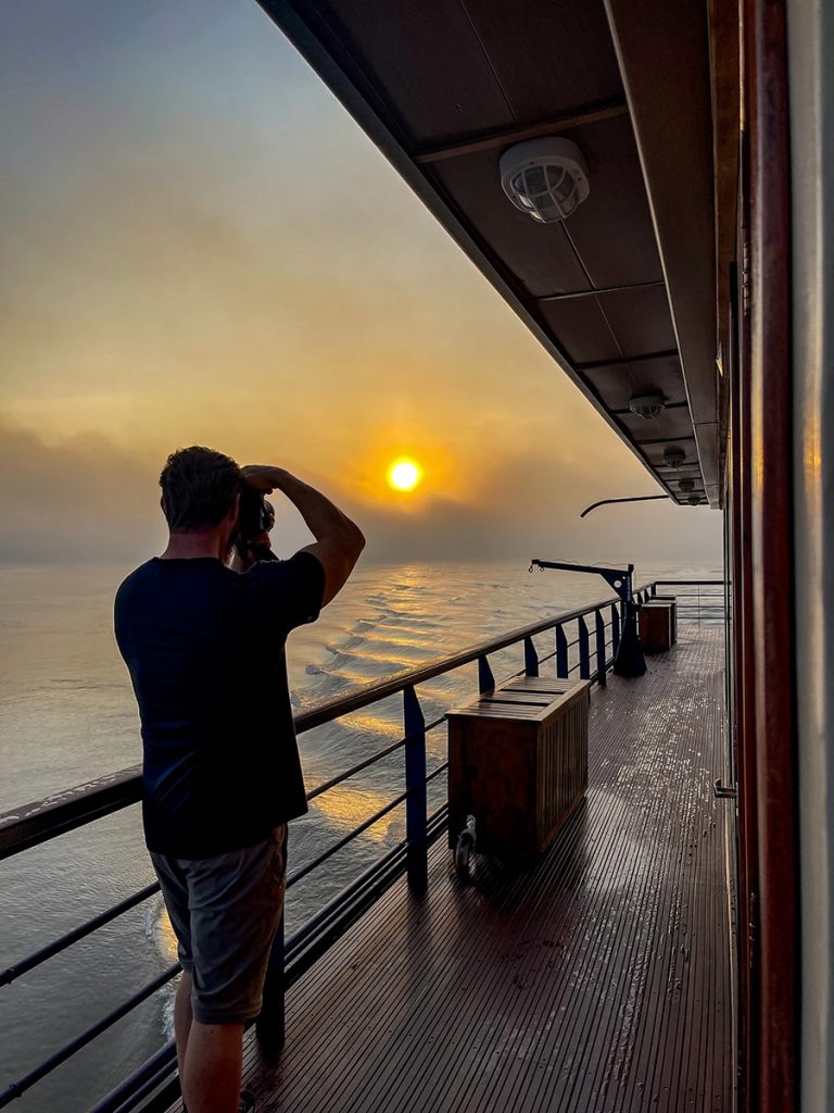 Gigantische Nebelschwaden hatten die Umgebung und das Schiff über Nacht fast vollständig geschluckt. Beinahe blind bahnte ich mir Schritt für Schritt den Weg hin zum Steuerhaus, stieß gegen die Reling und versuchte Orientierungspunkte zu finden. Aus dem Nichts drang plötzlich eine Stimme zu mir durch. Wilson, einer der Guides näherte sich mir.