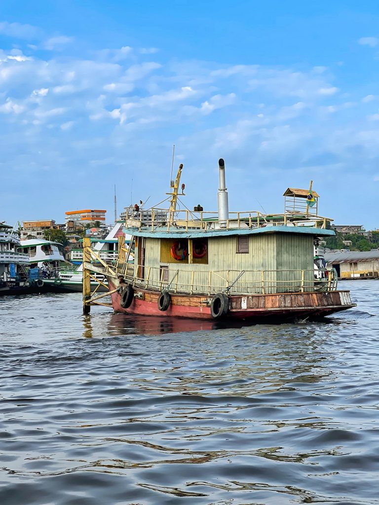 Bevor ich meine Reise zum Amazonas antrat, war ich mir nicht sicher, ob man in dem tropischen Fluss baden kann. Jedenfalls würde er nur so vor exotischem Getier wimmeln und möglicherweise zusätzliche Gefahren bergen. Nichtsdestotrotz packte ich meine Badesachen vorsorglich mit in den Koffer. Sollte sich mir die Chance auf diese außergewöhnliche Erfahrung bieten, so wollte ich vorbereitet sein. Nun stand ich auf dem Heck des Schiffes, lehnte mich gegen die Reling und schaute auf den größten Fluss der Welt, dessen Farbe mich an den brasilianischen Milchkaffee erinnerte, den ich hier so gerne trank.