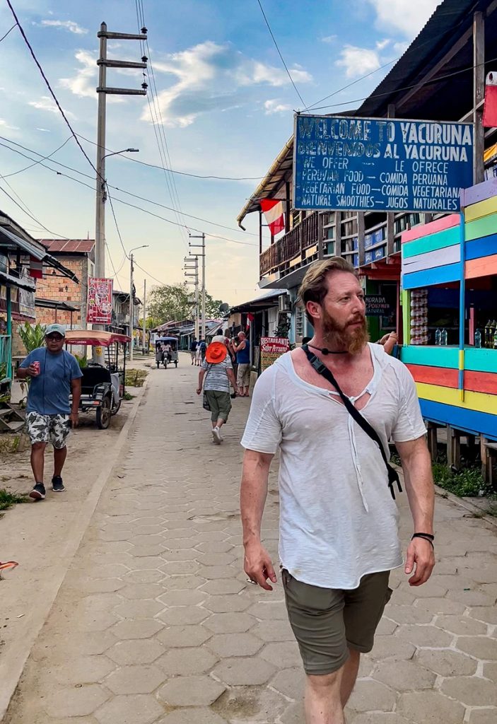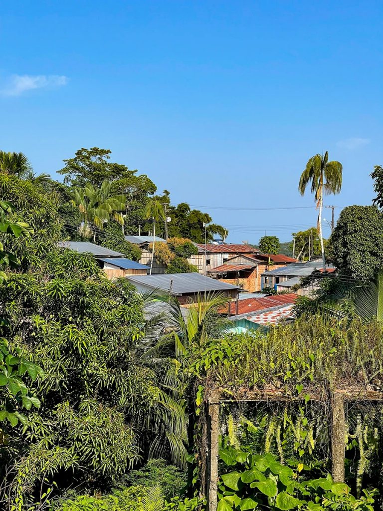 Gegen Nachmittag erreichten wir das Ziel und gingen in Tabatinga, dem brasilianischen Grenzort, vor Anker. Wir nutzten ein Flusstaxi, um damit nach Santa Rosa in Peru überzusetzen und dort ein wenig durch das beschauliche Dorf zu schlendern. Die Hauptstraße führte vorbei an zahlreichen einfachen Holzbauten, einem Souvenirshop mit allerlei Klimbim und einigen gemütlichen Bars. Hier und da boten Einheimische am Straßenrand selbstgemachte Backwaren oder Gegrilltes an.