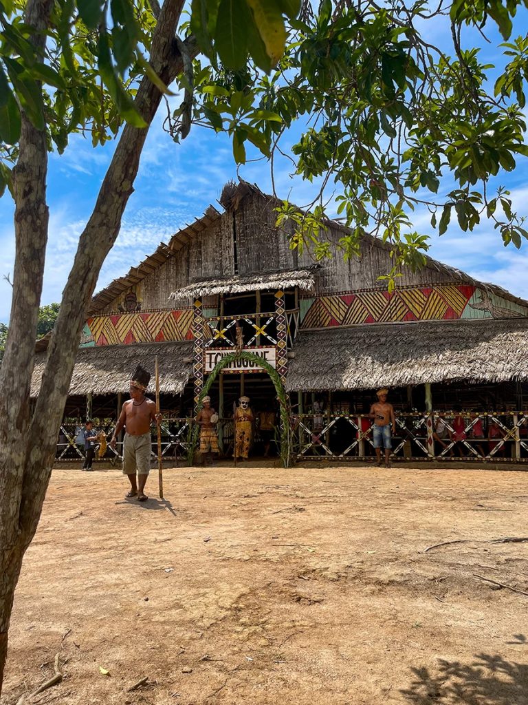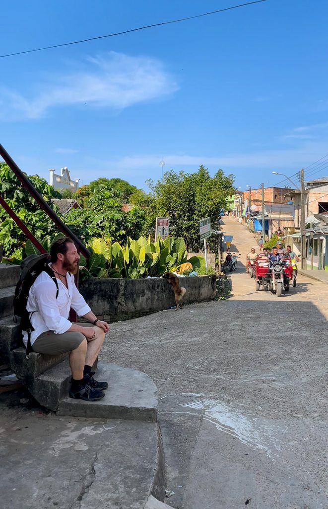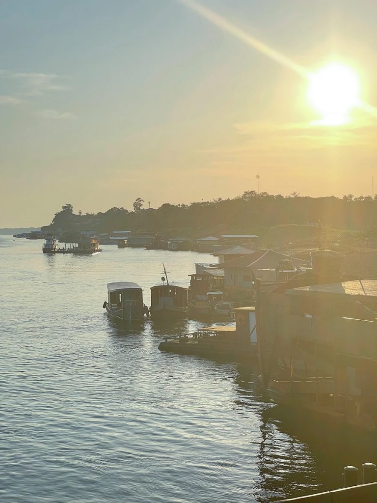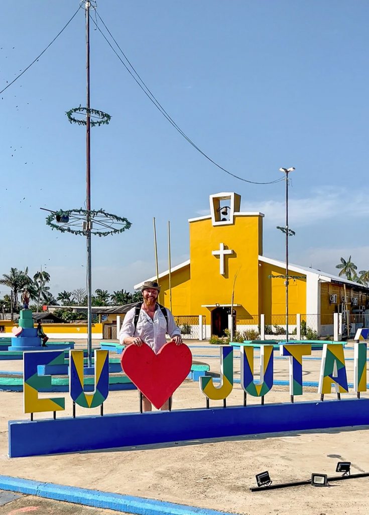 Wir entschieden uns, dort einen kleinen Zwischenstopp einzulegen. Ich besuchte die auffällige Kirche mit der sonnengelben Fassade, schlenderte durch die rustikalen Straßen entlang der von Palmen und Sträuchern umsäumten, bunten Hütten und trank abschließend auf dem lokalen Marktplatz in einer gemütlichen Bar mein erstes brasilianisches Bier. Der Ort vermittelte mir einen wunderbaren Einblick in das naturnahe Leben der Kleinstädter am Ufer des Amazonas.