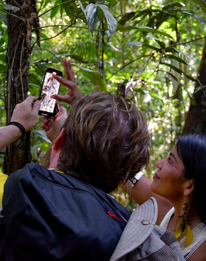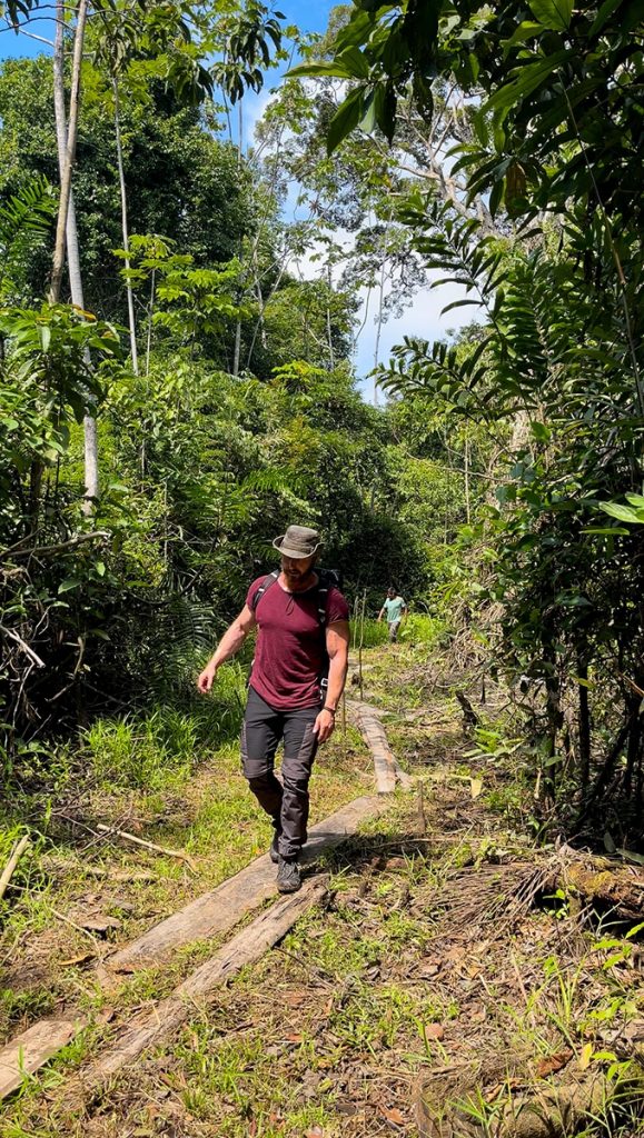 Kaum hatte ich einige Meter des Urwaldespfades beschritten, kam uns eine Eingeborene des Marubo Stammes entgegen. Die Frau diente als Vermittlerin und Übersetzerin für unser Treffen mit den Matis, denn für Fremde ist es verboten, das Reservat zu betreten und selbstständig Kontakt aufzunehmen. Sie führte uns kilometerweit durch dichtesten Dschungel, ungewiss ob die Matis zeitgleich auf der vereinbarten Lichtung erscheinen würden.