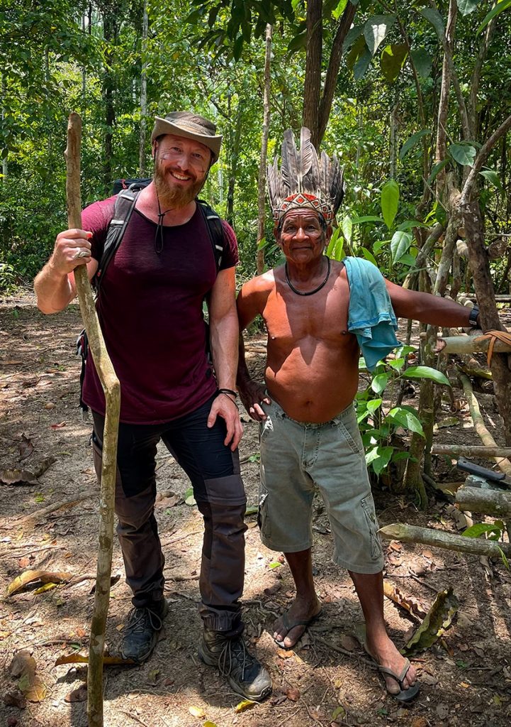 Sechs Tage würde deren aufwendige Anreise aus den Tiefen des Urwaldes dauern, ließ sie mich wissen. Dann vernahm ich plötzlich ein sanftes Knistern, weißer Rauch strömte durch das Pflanzengewirr. Mit einem gemütlichen Lagerfeuer, gegrilltem Fisch, einem flugs zusammengebauten Unterschlupf und einer faszinierend kreativen Zeremonie hieß uns das bemerkenswert lebhafte Volk der Matis willkommen…